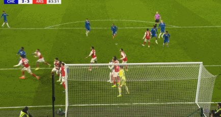 第83分钟,加纳乔二点迎球凌空破门梅开二度,切尔西2-3!