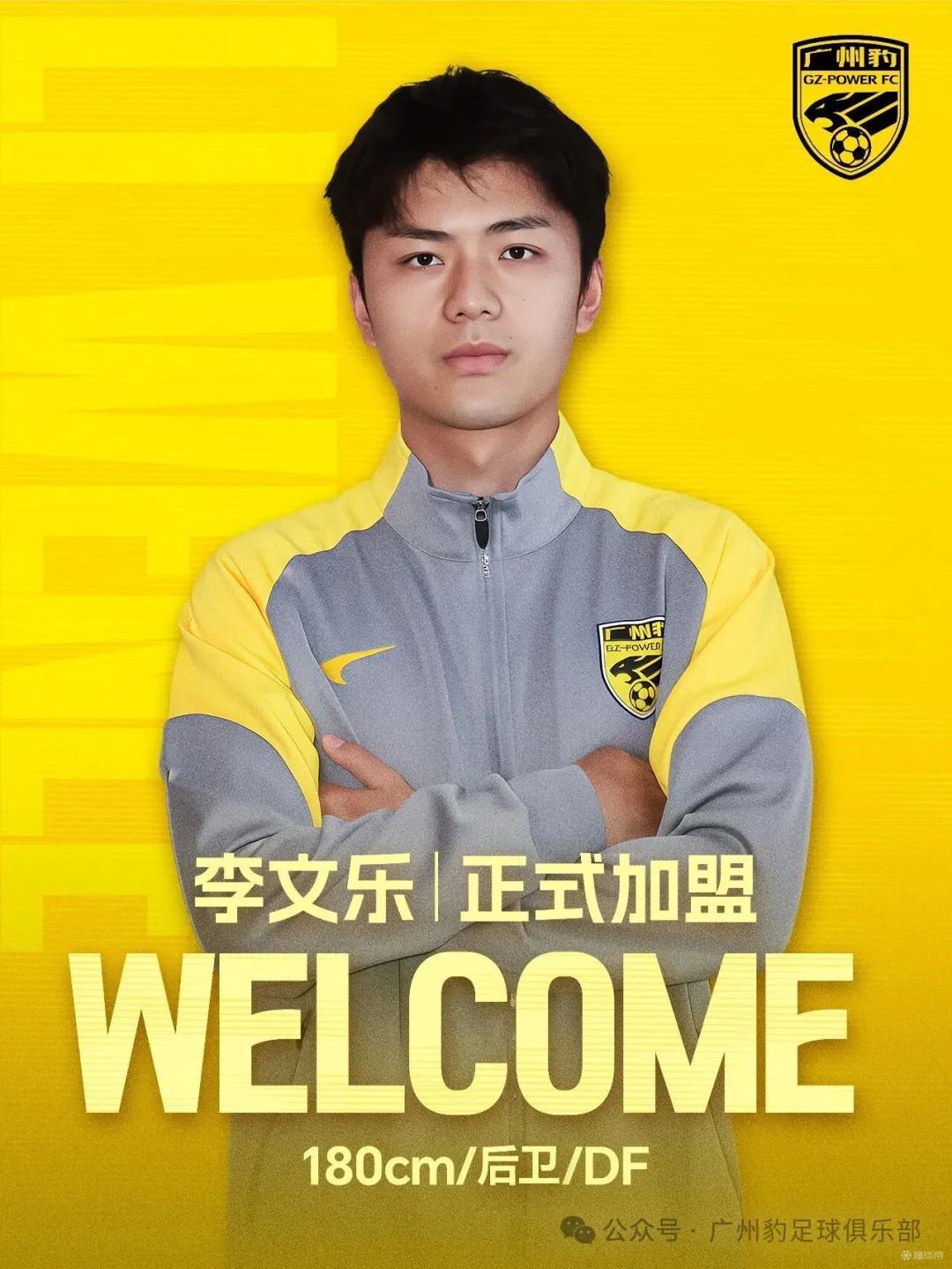 经与浙江职业足球俱乐部及球员本人协商并达成一致,潜力后卫李文乐正式加盟广州豹足球俱乐部。