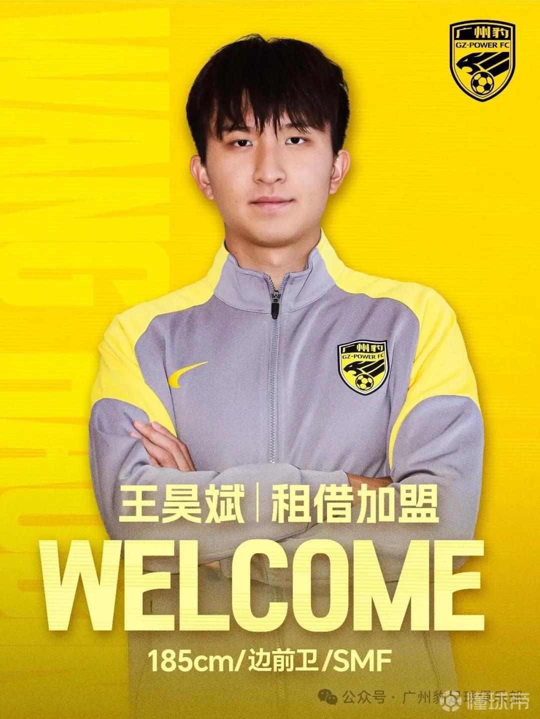 广州豹官方:王昊斌租借加盟俱乐部,田嘉睿、李文乐正式加盟